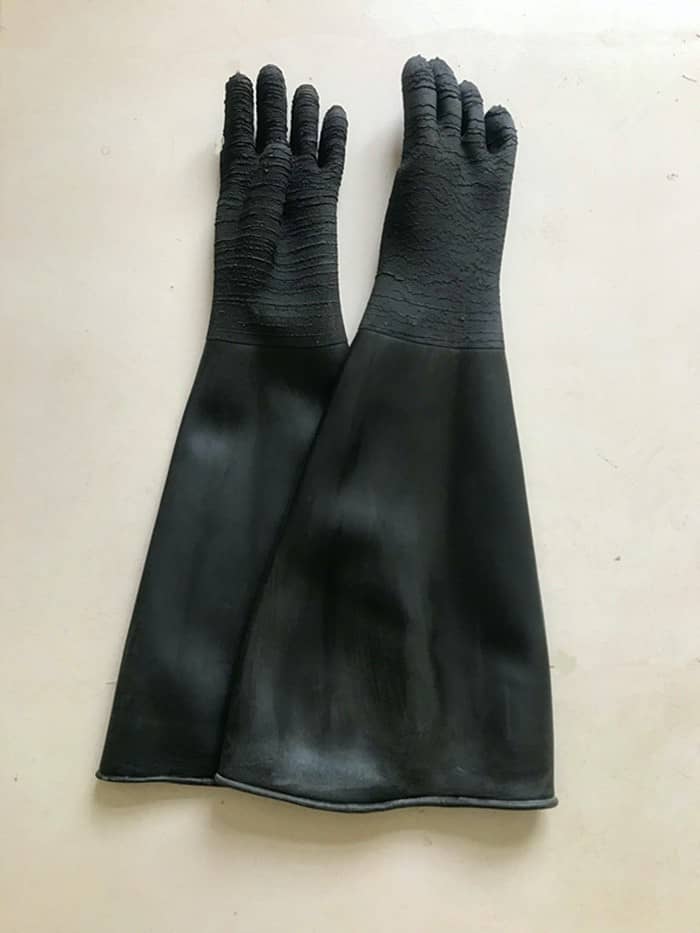 噴砂手套的常規(guī)尺寸:長(zhǎng)65cm,平放直徑為30cm。